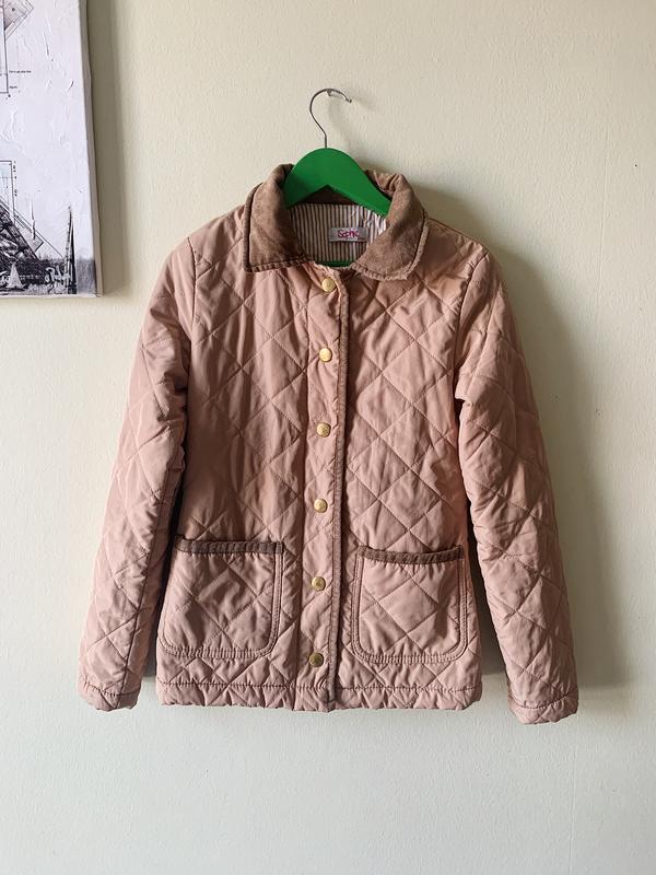 Легкая стеганная курточка на теплую осень-весну. Вельветовый воротник и налокотники. В очень хорошем состоянии. Подойдет как девочке, так и мальчику Рост 140 Плечи 34 ПОГ 41 Рукав 56 Длина 58,5