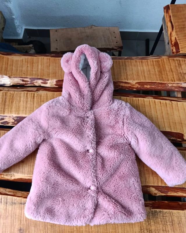 Красива рожева шуба зі штучного хутра з вушками ведмедика. рожеве суперм'яке штучне хутро. Можна прати в пральній машині. Вік 18-24 місяців (92 см).