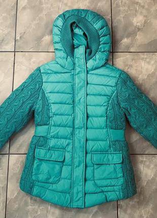 Куртка на девочку фирмы PINKO. Оригинальный. Носилы ее мало, в хорошем состоянии.Йде на рост 122-128 см. Очень теплая!! Идет под горло. Капюшон очень плотно прилегает к голове, что можно ходить без шапки. Наполнитель пух/перво и вязаные из шерсти вставки. Цвет куртки травяной (зеленый).Замеры по прососу.