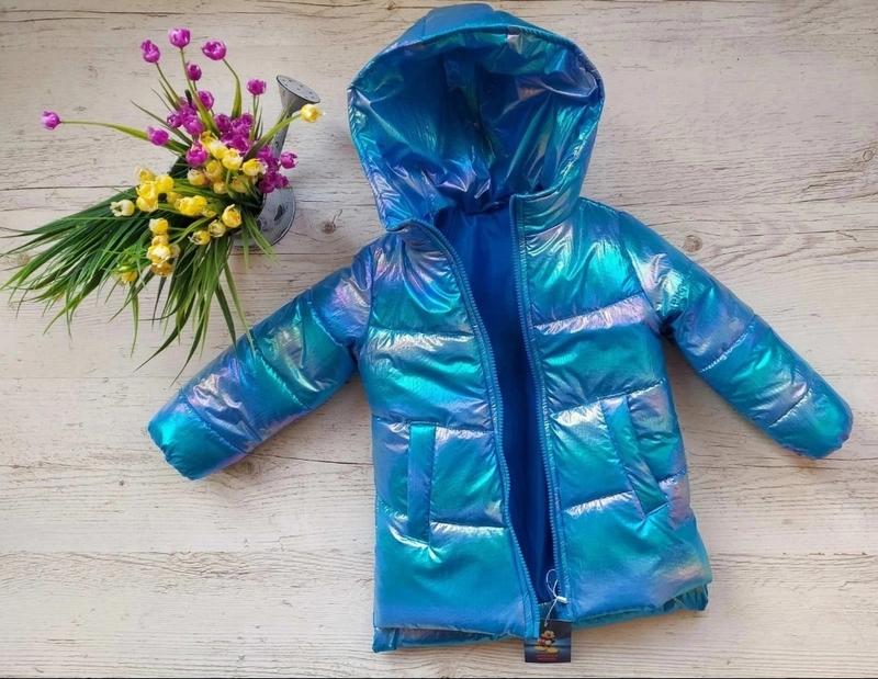 Голограмма курточка Размер:104,110 Состав : пластиковая голограммма ветро/водонепроницаемая; -подкладка основания: 150 синтепон; - подкладка рукава и полочек нейлон; Цвет: синий Спинка в куртке удлиненная; Руковая на резинке; есть боковые функциональные кошени для конфет Капюшон не отстегивается.