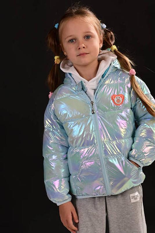 Куртка дитяча на синтепоні з ведмедиком хамеліон блакитний р.80,90,110,120
