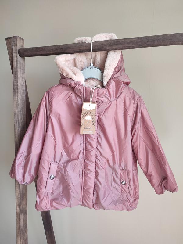 Куртка Next, єврозима. Тканина водонепроникна, всередині утеплена м'яким хутром. На рукавах та понизу має резиночки. Колір "грає" різного кольору на сонечку. Застібається на ґудзики Довжина 40 см, півоб'єм 38 см, рукав 31 см
