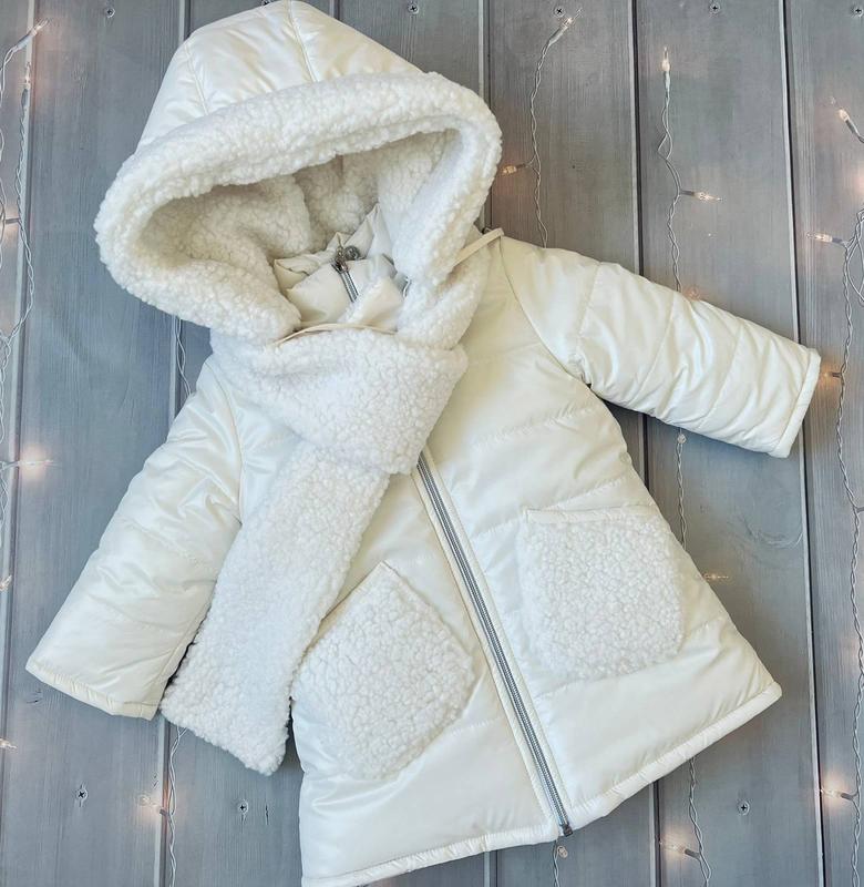 ❄️Цена: 1300грн Пальто для девочки Размеры: 86,92,98,104,110,116 Наполнение: Био пух 300 м/г, подкладка:флис, трикотаж; Шарф в комплекті; Опушка: баранчик; (!) Замеры выше(pointer)