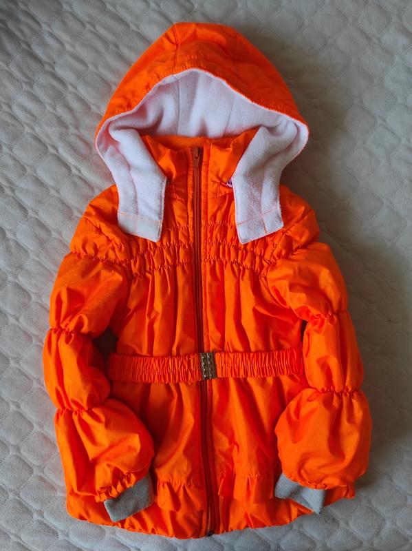 Куртка деми, очень легкая, состояние хороши только на манжетах. Без пятен, без дырок. Цвет очень яркий, но ближе к тому фото, что с ребенком, чем на первых снимках. Длина 43см рукав с манжетом 37, без - 33см ширина род руками 30см