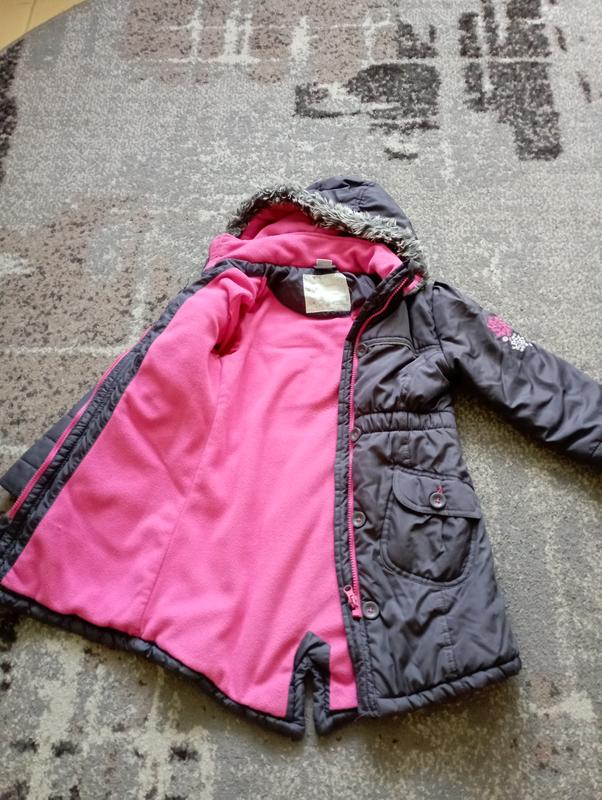 курточка зимова, дуже тепла, у гарному стані, з дефектів чуть підірваний зубець що входить у замок, сам замок защіпається, тож дочка ходила так., можна защіпати і на самі гудзики., більше дефектів немає. Підійде на вік 5-7р, заміри на фото.