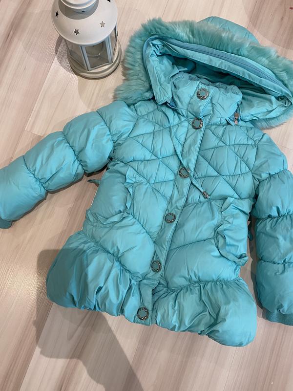 Теплюща зимова курточка в навіть самі сильні морози дитина не замерзне, розмір 98-104 Колір бірюзовий фото трохи не передає Замір: довжина 47 см, рукаввід плеча37 поюс резинка 4 см (весь 39) обг 33 см, капюшон знімається весь і хутро теж