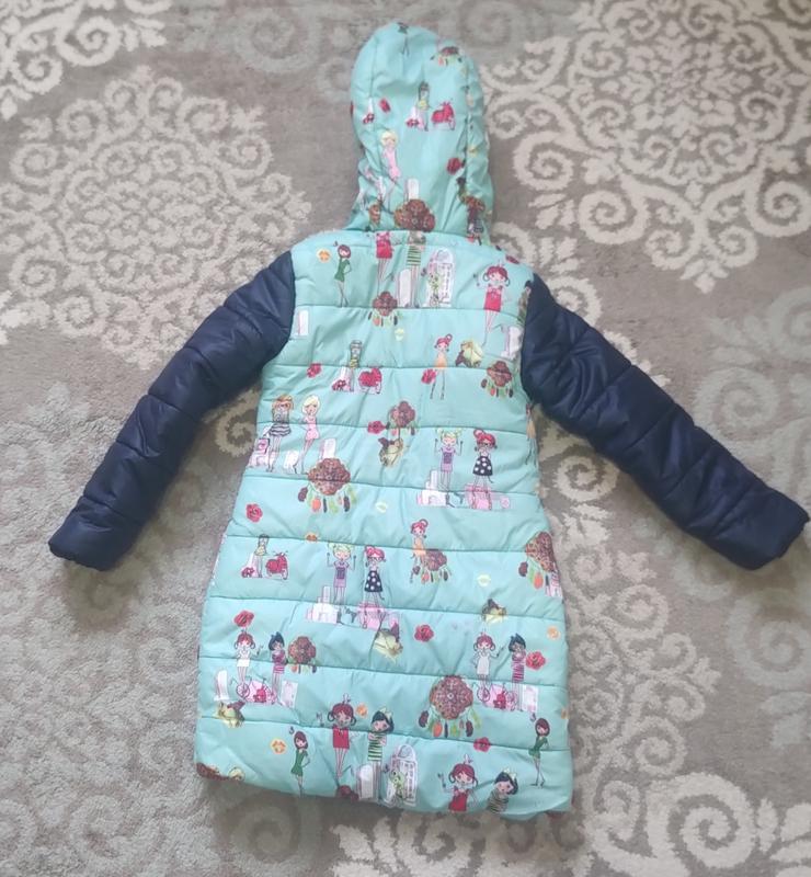 Детская куртка теплая на холодную осень и зиму. На возраст 5-6 лет, состояние очень хорошее, носилось 1 сезон. Наполнение синтипон 300., в середине к поясу флисовая подкладка, низ удлиненный.