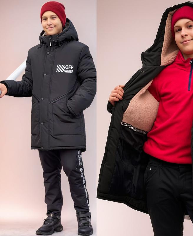 Сбор заказа в течение 1-2 дней! Возможен наложенный платеж на Новую Почту. * * * Также эта модель есть в другом цвете и размере. Со всем ассортиментом зимней верхней одежды для детей и подростков вы можете ознакомится в нашем каталоге Для быстрой связи напишите нам на Вайбер: +38********** * * * ОПИСАНИЕ Зимняя куртка-пальто на овчине для мальчика. Модный пуховик для подростков мальчиков, подростковая удлиненная парка на зиму. Размер: 42, 44, 46 (идут на рост 152-158, 158-164, 164-170). Смотрите размерную сетку на последнем фото. Цвет: черный, хаки, синий Материал верха: высококачественная водооталкавающая плащевка Канада; Подкладка: овчина + нейлон; Наполнитель: холлофайбер 250 г/м2; Принт: качественная накатка, выдерживает более 40 стирок при температуре 30*; Сезон: зима. Стильная куртка для подростков мальчиков, выполнена из высококачественной плащевки Канада. Материал дышащий, водоотталкивающий, морозостойкий. Куртка оформлена качественной фурнитурой. Изделие имеет два функциональных накладных кармана на замке. В качестве застежки используется молния трактор, поверх - ветрозащитная планка на кнопках. Рукав на трикотажном манжете. Капюшон вшитый, можно затянуть внутренней кулиской. В капюшоне евромех. Ткань - плащевка, которая отталкивает воду и грязь. Утеплитель - холлофайбер 250 г/м2 плюс овчина, выдерживает холод до -25 °C. Рукав подворачивается до 5 см, это дает возможность носить курточку не один сезон