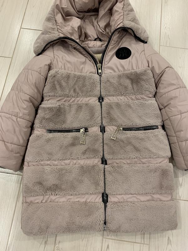 Куртка зимова ,дуже тепла,пудрового кольору, стан відмінний,але є нюанс Дитина зачепила і трішечки порвала Довжина виробу від капюшона по спинці 65 см. Довжина рукава від плечового шва 51 см. Ширина по спинці — 33 см Ширина грудей під рукавом 43 см