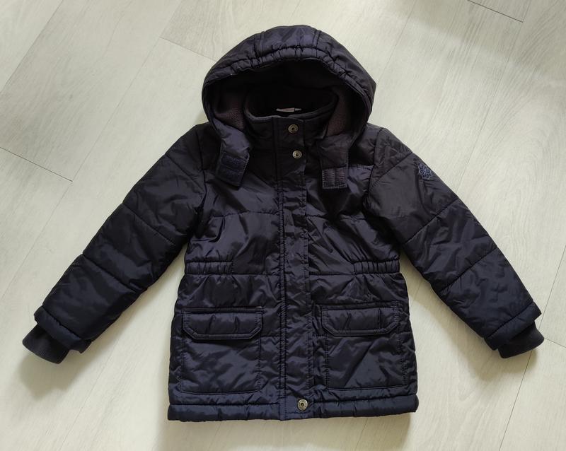 Куртка для девочки на холодное время года в очень красивом состоянии. Утеплена флисом, кроме рукавов. Легесенка, капюшон отстегивается, без нюансов. Размер 98/104 Замеры: длина - 49 см рукав - 37 см + манжет до 42 см плечи - 33 см под руками - 35 см пот - 34 см (резинка)