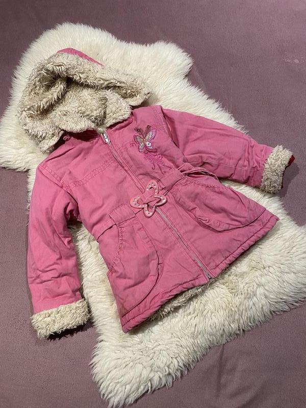 Стильная детская куртка дубленка для девочки/ Застегивается на молнию/ Есть карманы есть пояс есть капишон/ Хутро штучне/ Подойдет на 6-8 лет/ Длина 44 см/ Плечи 31 см/ Рукав 40 см/ Пог 34 см/ Знизу 40 см/ Продается как есть без возврата/