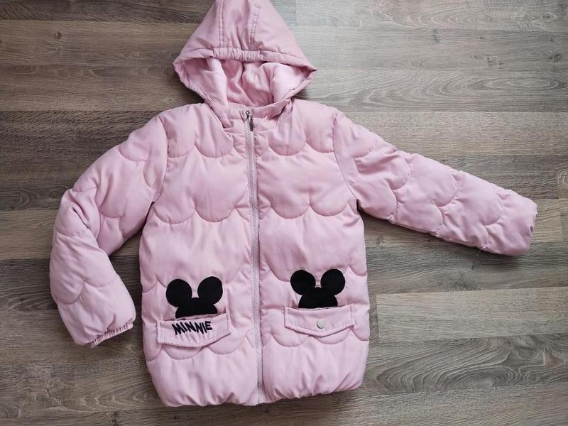Зимняя курточка для девочки, нежного розового цвета, интересный пошив. Носился один сезон, в середине теплая, замеры на фото