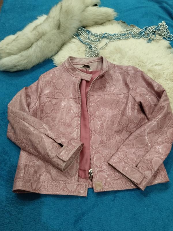 От George ,розовая со змеиным принтом,качественный кож.зам,впереди на зимнее,внизу на липучках,есть внутренние карманы,длина курточки-49 см,,длина рукава от поеча-48