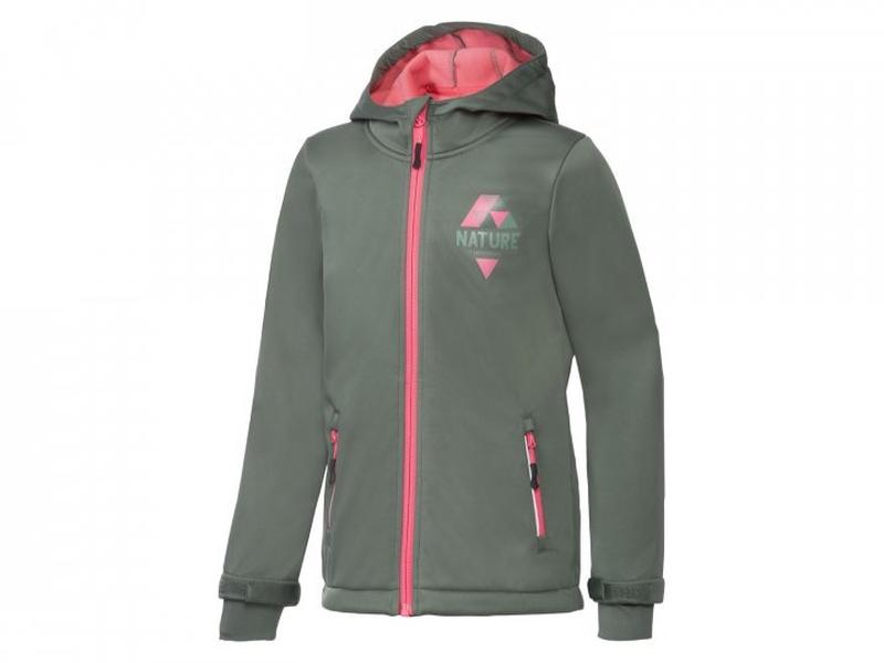 Куртка Softshell водовідштовхувальна та вітрозахисна для дівчинки Куртка Softshell – фірма Crivit. Softshell (Софтшелл) - це дуже легкий і компактний матеріал, при цьому з міцним зовнішнім шаром і густим зовнішнім шаром. Одяг з цього матеріалу добре сопротивляется воді, вітру і стійка до істиранню, і дуже добре "дихає". Куртка тонка та еластична на дотик, але при цьому добре тримає тепло тіла, і за рахунок цього дуже тепла. Температурний режим – залежно від особливостей сприйняття та теплолюбності, а також активності під час прогулянки (від +15-20 до +5-0). Чим більше рухаєшся, тим більше гріє. Водонепроникний матеріал (висота водяного стовпа 2000 мм) Тришарова м'яка тканина з мембраною та флісовою підкладкою забезпечує правильну температуру тіла та захист від вітру та дощу Розмір:122/128