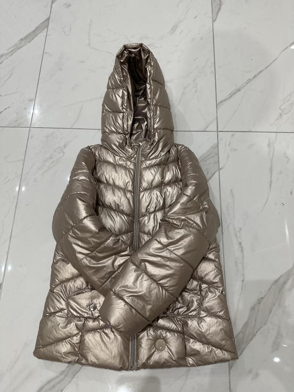 Дуже гарна куртка,стильна та тепла.Стан ідеальний.але на рукаві мала заціпила і розігрівала.Можна заклеїти або зашити,тканина така,що не буде видно,це майже під рукою ,останнє фото