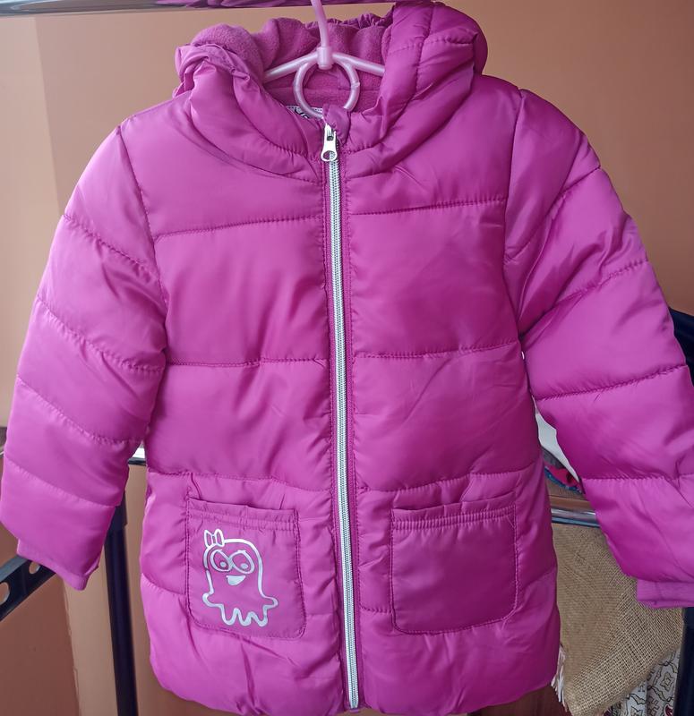 Новая, с этикеткой, есть нюанс на рисунке, потертость, на кармане. Наполнитель синтепон, подкладка флисовая. Верхняя ткань плащевка. При необходимости дам дополнительные фото и замеры