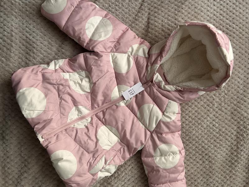 Зимова курточка від Gap, розмір 2Т, фактично іде на зріст до 91 см. Нова Заміри Довжина по спинці 42 см Ширина 36 Рукав від горла 35 Підкладка на флісі, капішон на штучній овчині
