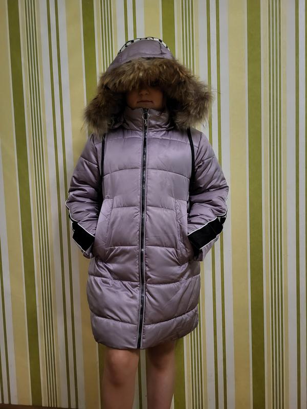 Гарна, зимова куртка (до коліна )для дівчинки. На зріст 128 см.