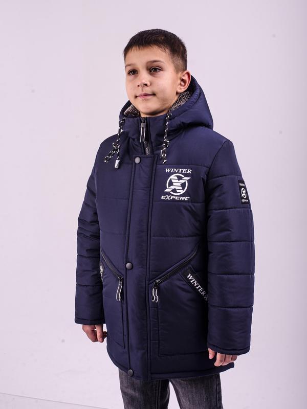 Тканина: канада (плащівка яка не продувається, не промокає, морозостійка); Утеплювач: холофайбер, щільністю 150г/кг; Підкладка: овчина (колір капучіно); Колір: темно-синій, (дивіться на фото); Розміри: 30-40 (110-146 зріст) Дуже тепла куртка-парка на овчині відмінної якості для повсякденного носіння. Капюшон вшитий, в капюшоні евромех. Дві накладних кишені і дві кишені на блискавці. Усередині рукава манжетик з трикотажу (рукав можна підвернути). Центральна застібка ― блискавка ,,трактор,,. Вітрозахисна планка на кнопках.