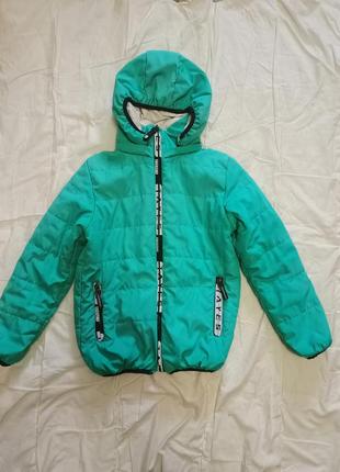Куртка в хорошем состоянии. Есть небольшой дефект виден на последнем фото. Длина 51 см, рукав 48 см, плечо 9см. На 6-8 лет