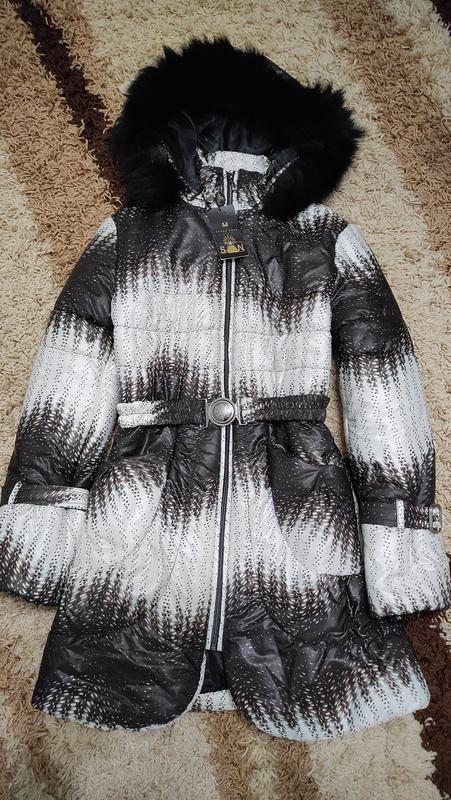 Зимова куртка. Нова. На замке, с поясом, мех искусственный из капюшона снимается. Размер 40. Все замеры находятся на фото.