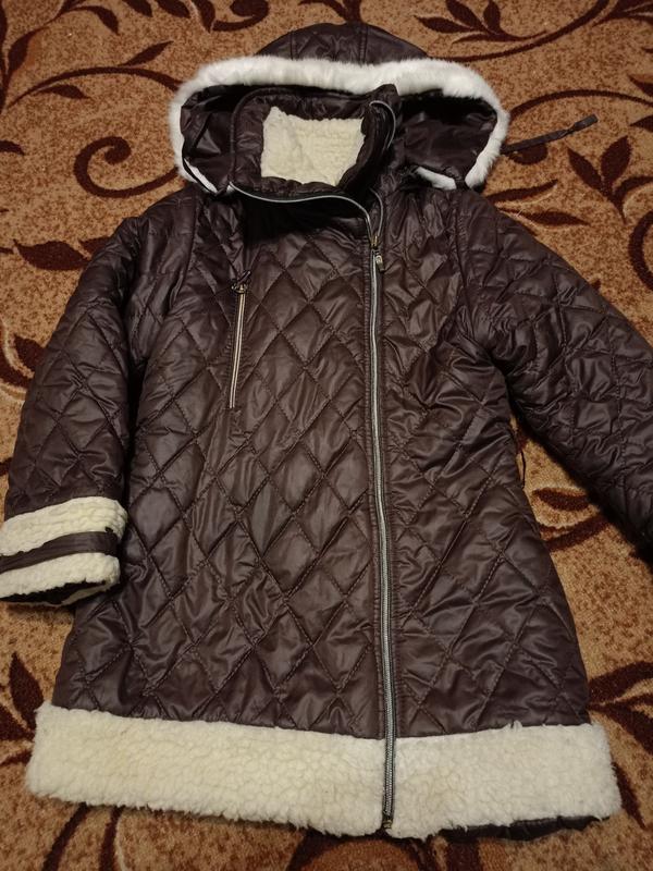 Куртка зимняя на девочку, 5-7 лет Состояние нормальное, есть дефект на рукаве (см.фото) Очень теплая, на овчине Длина - 58 см ПОГ - 35 см ПОБ - 40 см от плеча до плеча - 30 см Длина рукава - 46 см