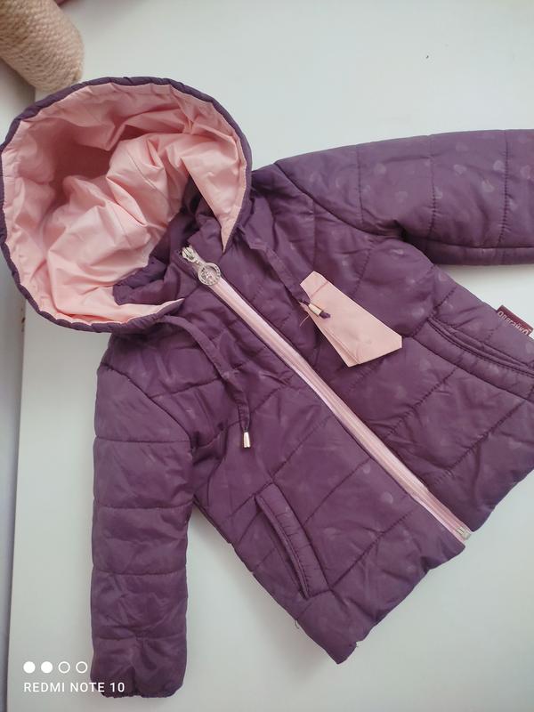 Курточка на дівчинку на осінь-весну в гарному стані , на 1.5- 3 роки приблизно Заміри :рукав 30 см, висота 37 см На ленточці є плямка спробую відіпрати, останнє фото