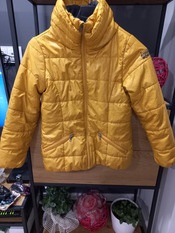 Куртка красивого оранжевого цвета на молнии, есть 2 кармана, без капюшона. Куртка из очень приятной качественной ткани на утеплении. Воротник двойной и мягкий, высокий. Без дефектов! Размер на рост 140 см. Замеры: рукав 51 см, плечи 34 см; длина 54 см. Грудь 82 см, талия 79 см, бедра 82 см.