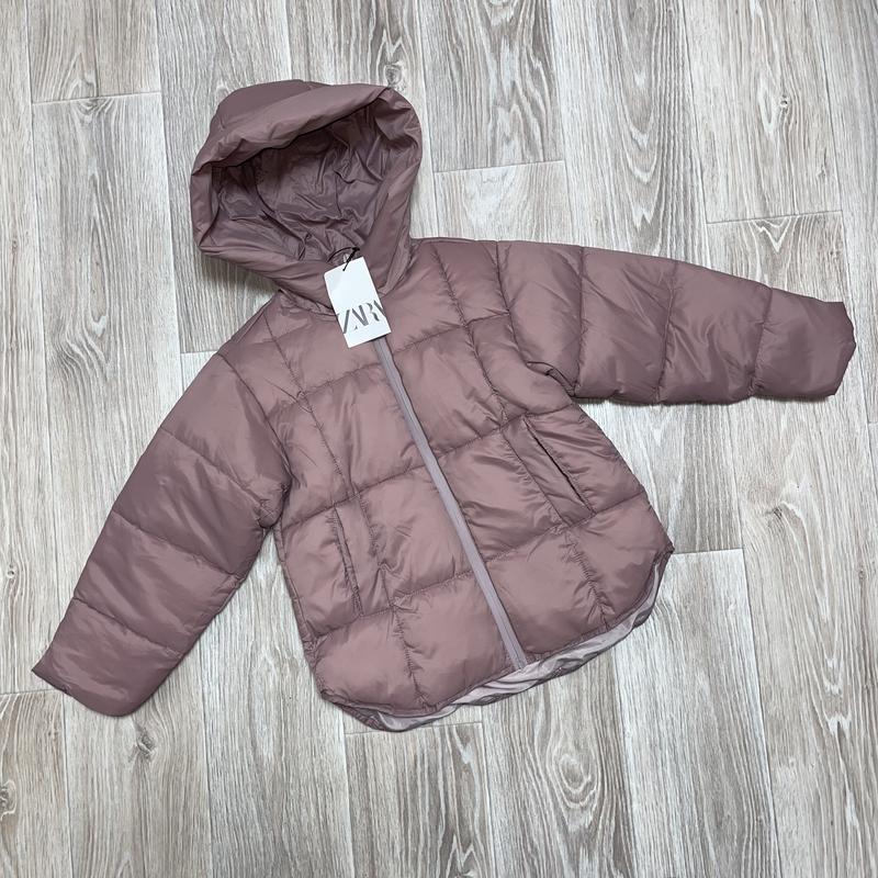 Куртка з капюшоном. Застібка на блискавку. Кишені спереду. Підкладкова тканина поліестер Колір Бузковий 🏷Zara 8 років Довжина 53/56. ПОГ 42. Рукав від шиї 54