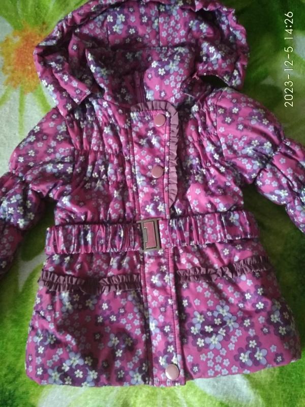 Курточка для двору. Рукава можно закатывать/откачивать. Еврозима/демисезон. Замочек работает отлично, потому что был заменен на новый. Верхняя кнопочка есть. Последующих двух нет, но в глаза не бросается за счет пояска. К ней есть еще полукомбинезон в удовлетворительном состоянии, который отдам в подарок.