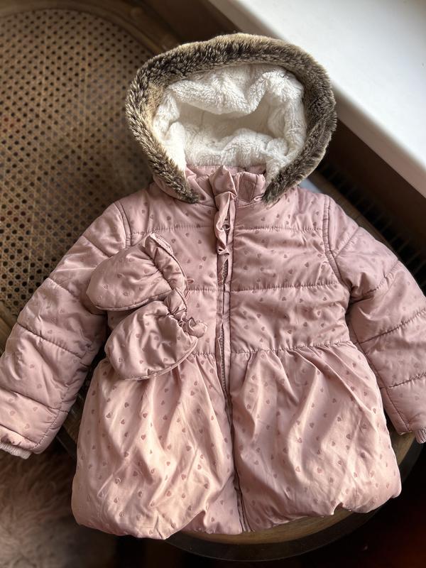 Курточка В хорошем состоянии Идет с варежками Размер 1,5-2 года Нюанс ( стерты сердечки местами) В основном состояние супер