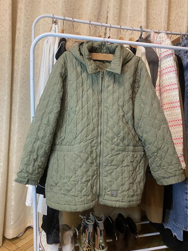 Стеганная куртка для девочки, идеально на весну, теплую осень, капишон снимается, рост указан 122, как на меня, крупномерит, есть маленький нюанс (расстоявшийся шов у кармана)