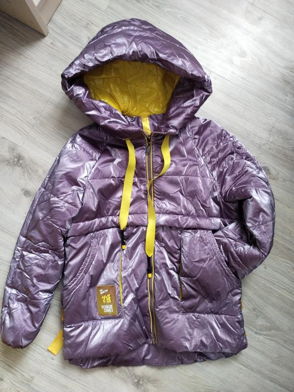 При замовленні від 2 речей роблю знижку 🤗 Курточка гарна і яскрава, блискуча. Тоненький синтепон. В ідеальному стані. Єдиний недолік - на останньому фото.