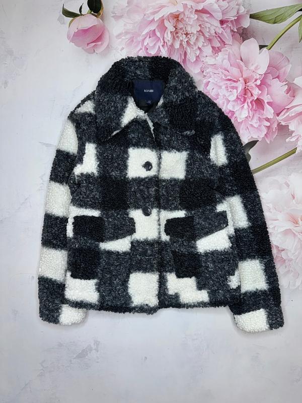 Очаровательная детская куртка для вашей маленькой модницы! Изготовлена из мягкого материала "барашек" для тепла и комфорта. Стильное сочетание черного и белого придаст уникальный шарм ее образу. Пусть ваша малышка блеснет стильностью и уютом в этой курточке! Подкладка полиестер Состояние новой 🏷️Kiabi 12 лет/146-152 Длина 54. ПОГ 42. Рукав 52-64