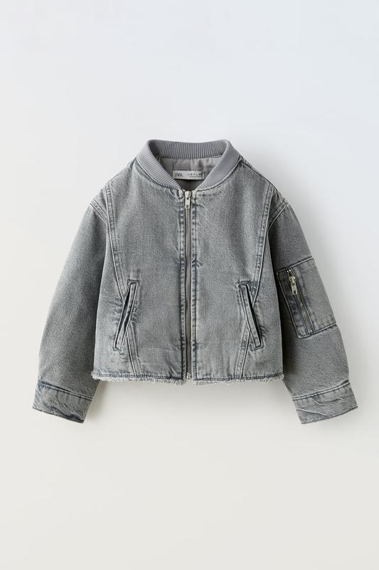 Модный бомбер Zara с круглой горловиной и длинными рукавами. Застежка на молнию спереди. Карманы спереди и на рукавах. Потертый подол. Размеры: - 120 см (6-7 лет). Чтобы заказать, пишите мне.