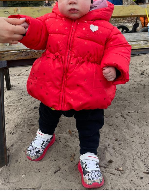 Теплая куртка, ориентировочно холодная весна-осень. Тепла зима. Состояние отличное. Кроссовки 20 г. На фото ребенку 10 мес