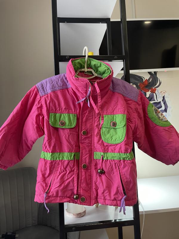 В цьому оголошенні яскрава куртка для дівчинки.Замість поясу-резиночка,яка стягується(фото 7).Комір-стійочка(шийка закрита),можна стягувати верх коміру (фото 6). Куртка в дуже хорошому стані,з недоліків-фото 8. Дивіться всі моі оголошення.