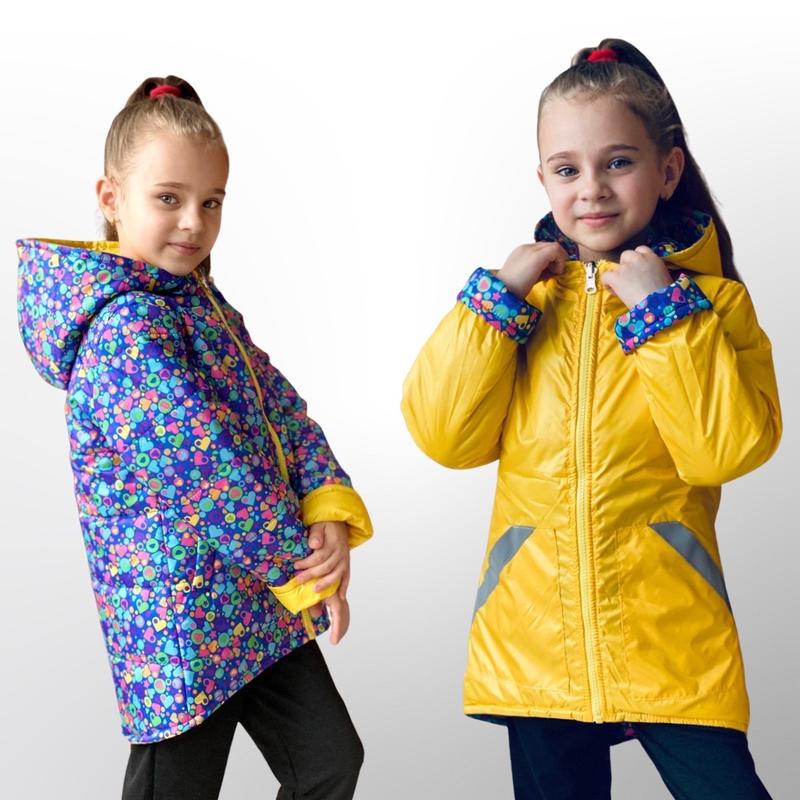 Куртка двусторонняя "АНЖЕЛЛИКА" демисезонная для девочки. Стильная, удобная, легкая, теплая, не прихотливая в стирке куртка - это именно тот вариант, который нужен для повседневного использования. Одна сторона выполнена из принтованной плащевки "лаке". Очень практичная расцветка. Вторая сторона ультрамодного желтого цвета. С обеих сторон есть карманы. Капюшон - притачной. Удлиненная по спинке Так как куртка двусторонняя - то рукав можно подвернут на любимую желаемую величину. Наполнитель: синтепон 150. Подкладка: нейлон 190 г/м (прочная). Размер: 📌104 см: длина рукава - 39 см, длина куртки по спинке - 51 см, длина куртки по переду - 41 см, ПОГ - 35 см, ПОТ - 33 см, ширина плеч - 28 см. 📌116 см: длина рукава - 44 см, длина куртки по спинке - 56 см, длина куртки по переду - 46 см, ПОГ - 38 см, ПОТ - 37 см, ширина плеч - 30 см. 📌122 см: длина рукава - 46 см, длина куртки по спинке - 60 см, длина куртки по переду - 50 см, ПОГ - 42 см., ПОТ - 39 см, ширина плеч - 31 см.