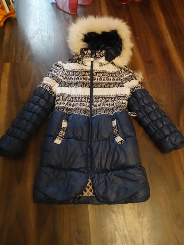 Теплая и легкая (что немаловажно зимой) курточка на синтепоне .Ребенок никогда не мерз. Длина по спинке – 70см От плеча к плечу – 33см Длина рукава – 52см. Капюшон отстегивается. Приталенный силуэт и пояс сохраняют тепло. Темно-синего цвета с белыми вставками, смотрится очень нарядно, по-зимнему. Есть нюансы. На фото видно,царапина на спине , ее не видно если не присматриваться. Поэтому и цена гораздо ниже чем выставляют аналогичные варианты. Остались ею очень довольны. Цена 350 грн. пишите - отвечу на все вопросы...