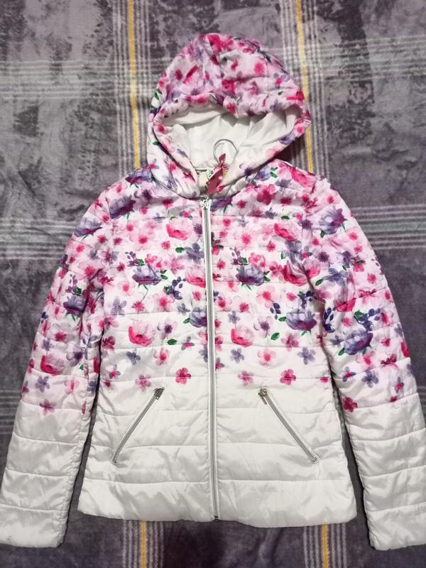 Куртка весенне - осенняя в цветочек, состояние хорошее.размер на 11-12 лет.рост 164, рукав 62, плечи 36, длинна 60 ( цена 350 гривен
