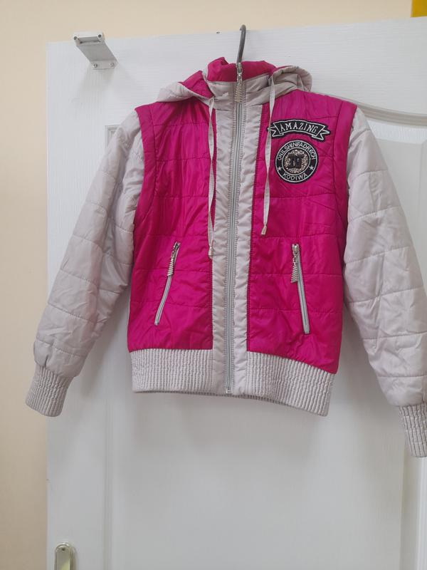 Куртка весенняя с отстегивающимися рукавами,можно носить как жилет.Длина куртки 50см,плечая 35см, длина рукава 52 см.
