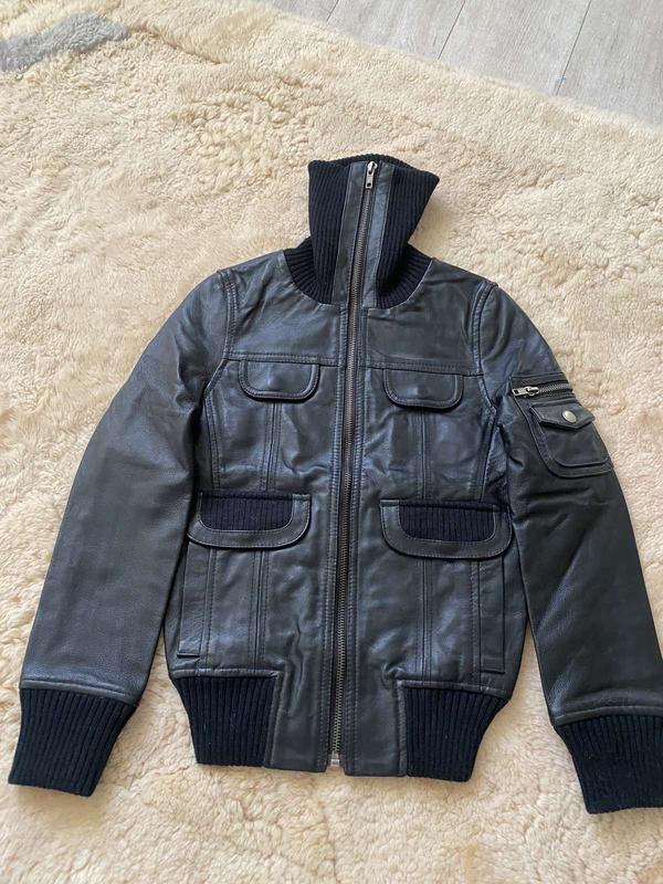 Шкіряна куртка review оригінал,чорний колір,розмір 8/128,ціна 3050 гривень Плечі 30 Рукав 52 Під рукавами 36 Довжина 51