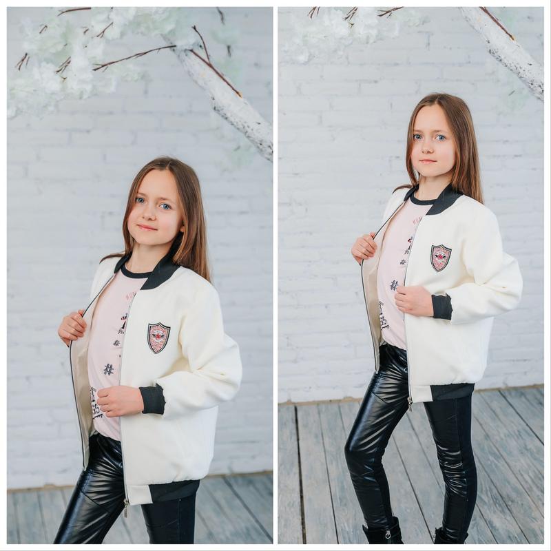 Кашеміровий бомбер для дівчинки Розміри: 116 Підкладка: нейлон: Декор: нашивка з пайеток, на спинці вони двосторонні Колір: молочний; Заміри 116 Рукав до резинки (з резинкою) 38(42) 40(44) 42(46) 44(48) 46(50) Довжина (з резинкою) 42(46) 44(48) 46 (50) 48(52) 50(54) Плечі 30 31 32 33 34 Спинка 38 39 40 41 42
