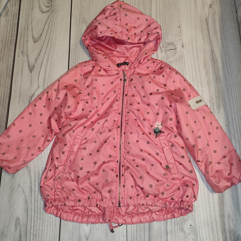 покупала бу,состояние не пишу,что удовлетворительное,т к есть нюансы незначительные,которые учла в цене.дыр нет.носил ребенок с удовольствием.застирывала руками рукава и немного стали бледнее горошки.впереди над карманом была дырочка,купила и сделала в ателье цветочки.очень классная,мягкая,воздушная.трикотажная подкладка хлопок.есть тонкий слой утеплителя.сзади шнурок,можно низ растянуть или заузить.цена символическая,хотя бы за ателье.размер 110.длина 50,по спинке немного длинее.рукав 40,в груди 38.капюшон не съемный.смотрите другие мои объявления.