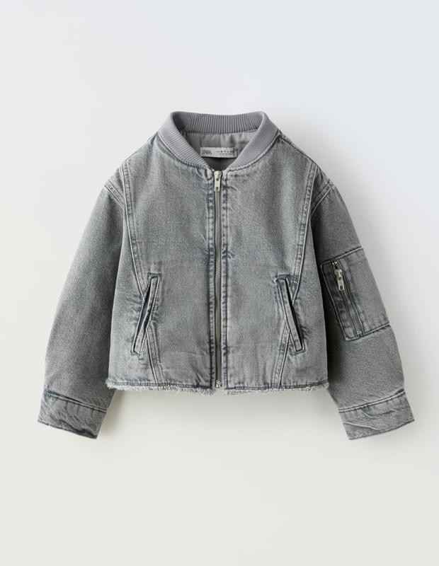 Бомбер с круглой горловиной и длинными рукавами. Застежка на молнию спереди. Карманы спереди и на рукавах. Потертый подол. Размеры: - 120 см (6-7 лет)