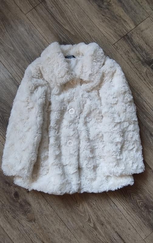 Очень красивая шубка, выглядит празднично, нежного молочного цвета, состояние отлично, без дефектов. Имеет тоненький слой утеплителя, подойдет на теплую осень, весну. 110-122, 5-7 лет Замеры: плечи 34 см ширина под рукавами 40 см рукава 40 см длина 50 см