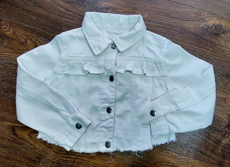 Белая курточка с карманами, застежка-кнопки.Стан идеален. Замеры: Длина-30 Ширина-34 Рукав-38