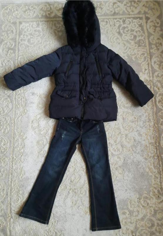Длина 48, рукав 44+ манжет, под руками 39. С дефектов стерлась краска на кнопках, на фото видно, не сбита. Наполнитель пух/перо. Цена за куртку. Джинсы почти новые, длина 69.
