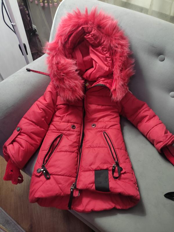 Гарна куртка для дівчинки на рукавичках отвори під великий пальчик. є зашита дирочка на в'язаній вставці рукава, але на носіння не впливає