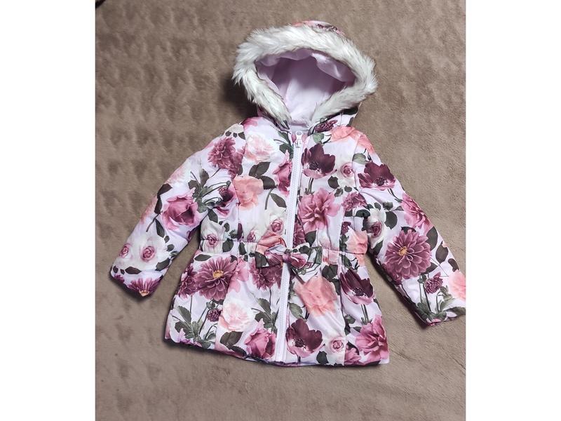 Легка яскрава курточка. Хутро з каптура не знімається. На тоненькому синтопоні.